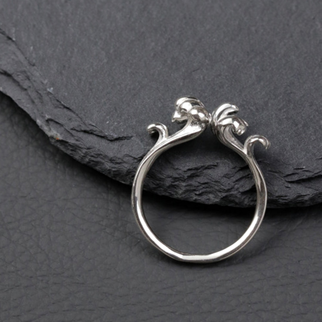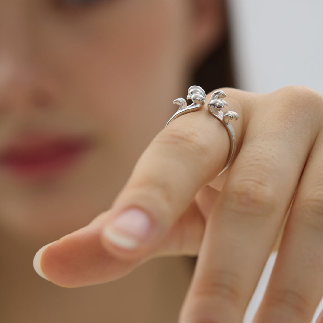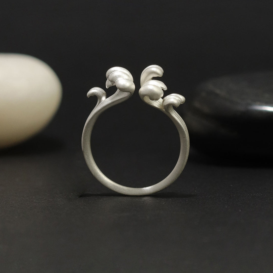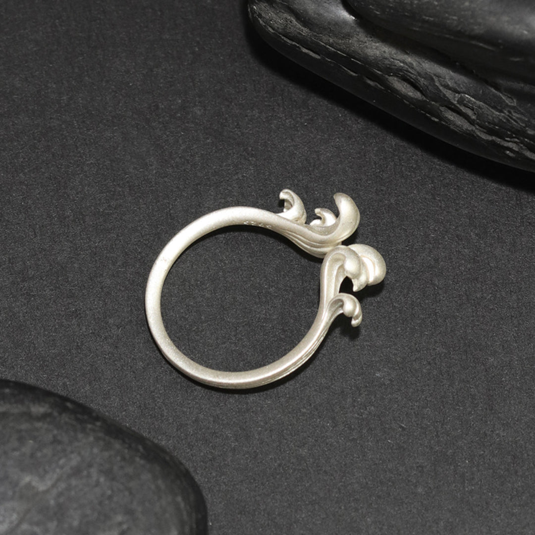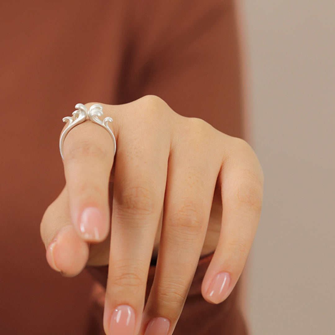 Inspired by the ever-changing movement of the ocean, the design of this ring features two opposing wave crests that form its distinctive, open shape. The ring is adjustable to three sizes for a comfortable fit and is crafted from 925 sterling silver. Its maritime appeal makes it suitable for everyday wear, whether worn alone or together with our matching wave brooch. The smooth surface and practical design ensure comfort and easy pairing with other jewelry.