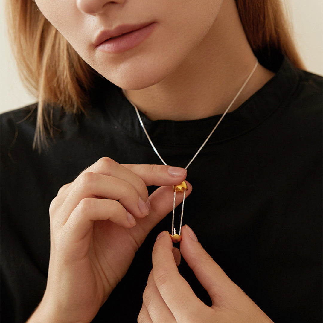 Necklace With Surprise Egg Pendant In 925 Sterling Silver 18K Gold Plated Handmade Playful Niche Jewelry Gift