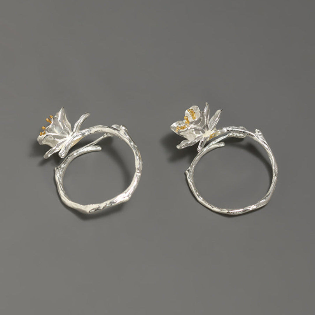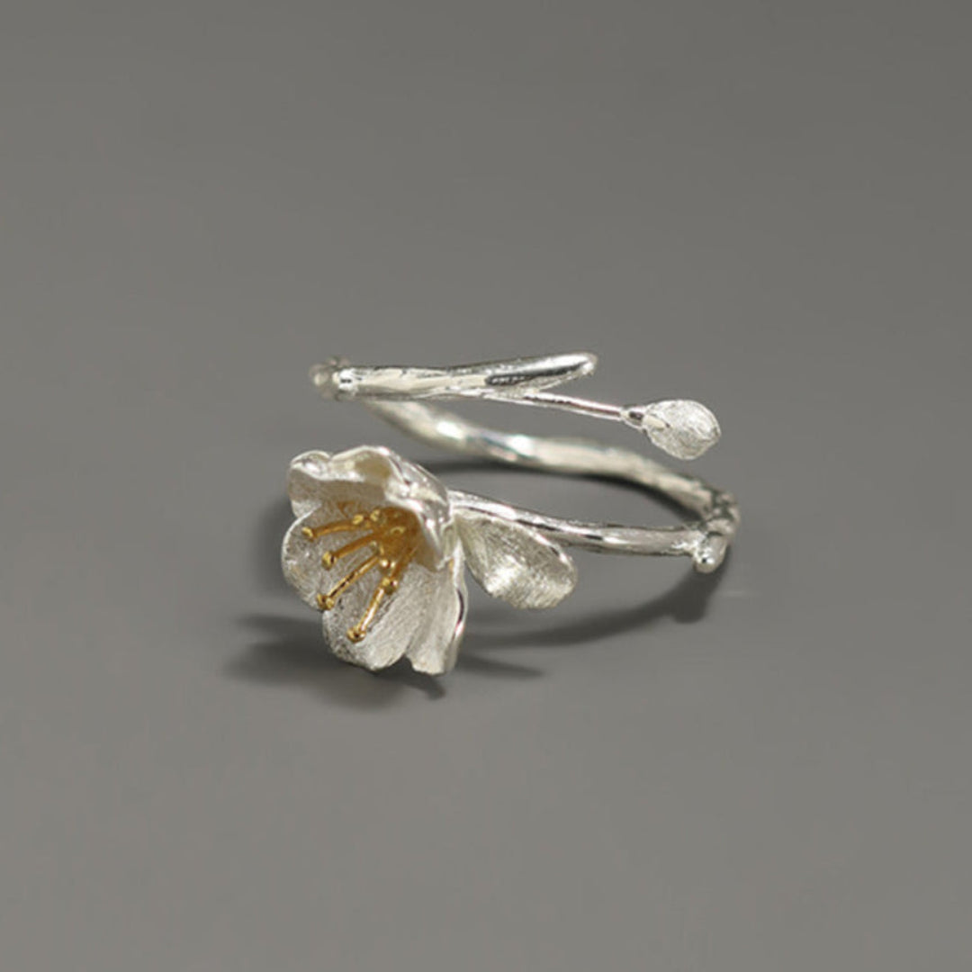 Begonia Flower Ring In 925 Sterling Silver 18K Gold Plated Fine Handmade Floral Jewelry Design Gift For Her