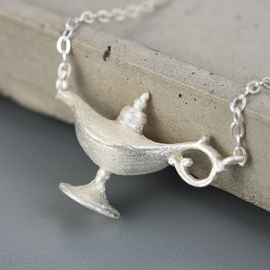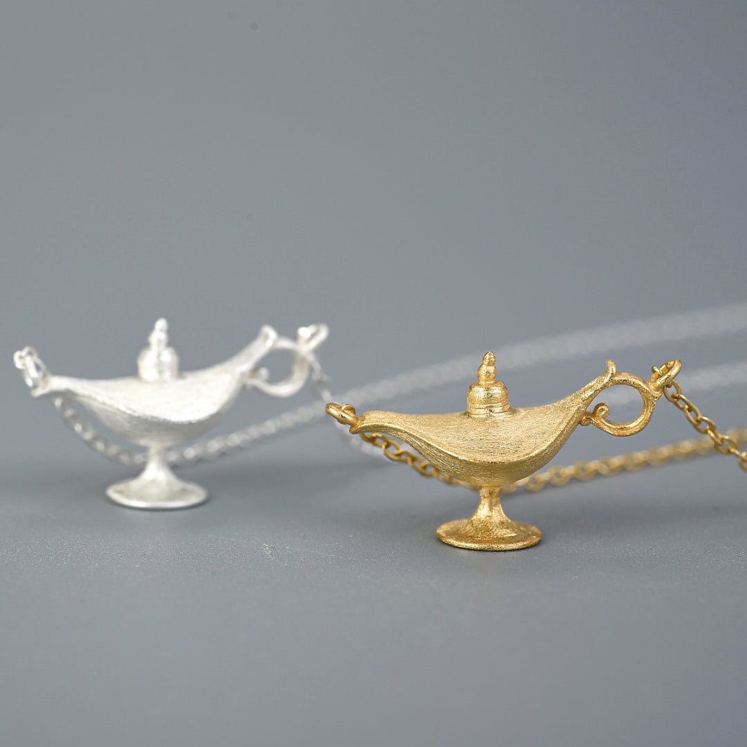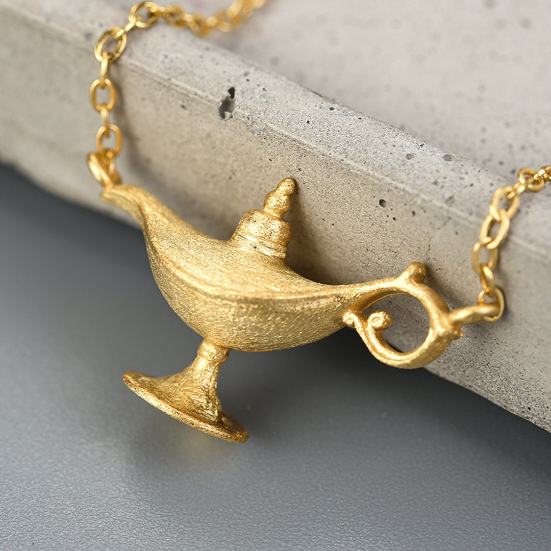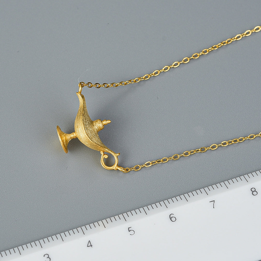 Necklace With Aladdins Lamp In 925 Sterlingsilver 18K Gold Plated Handcrafted Fun Jewelry Design