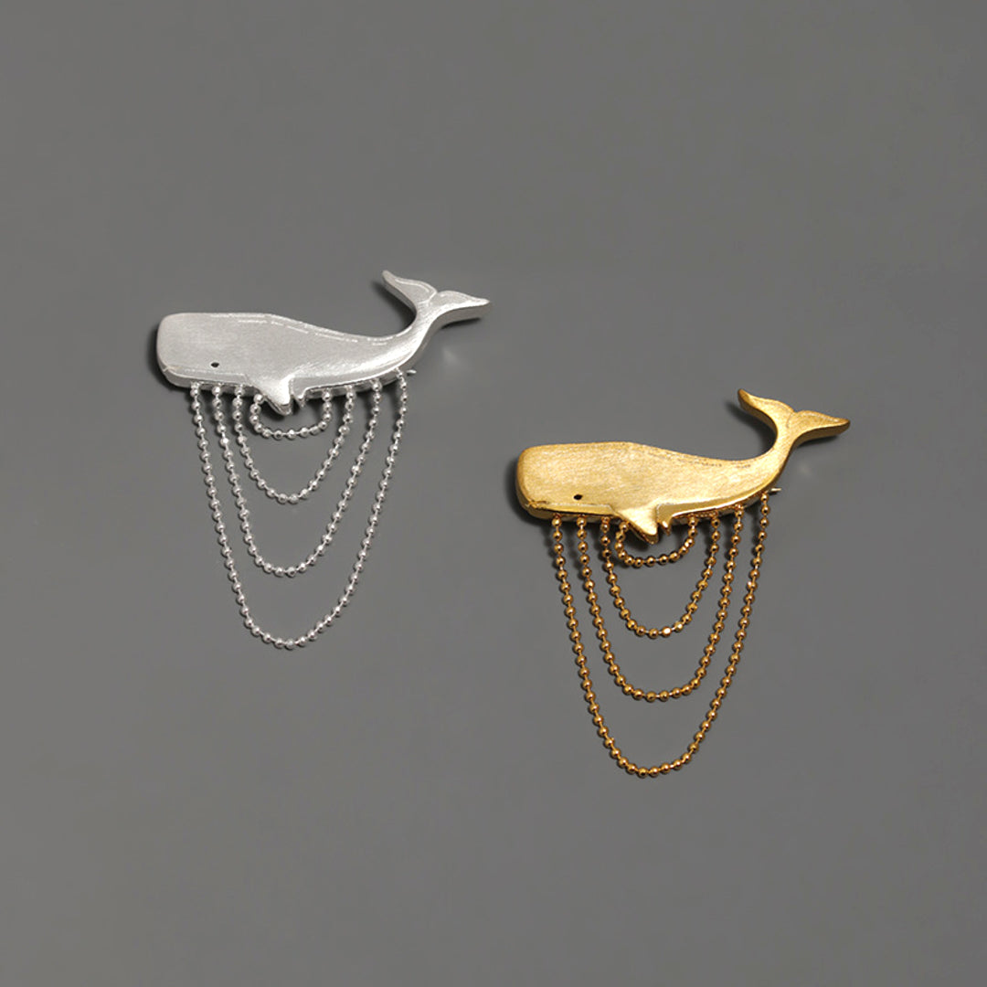 Sperm Whale Brooch In 925 Sterling Silver 18K Gold Plated Handcrafted Animal Jewelry Design
