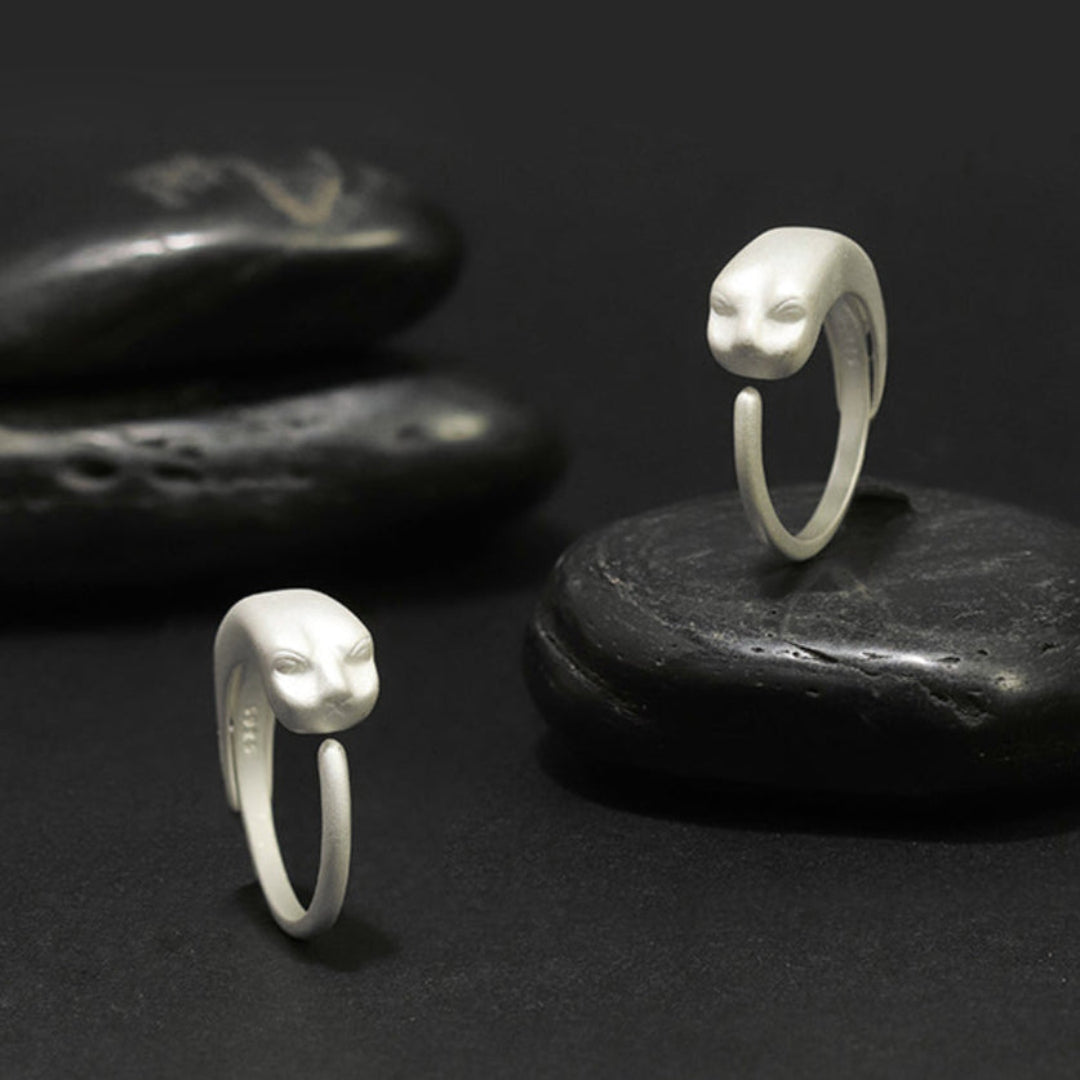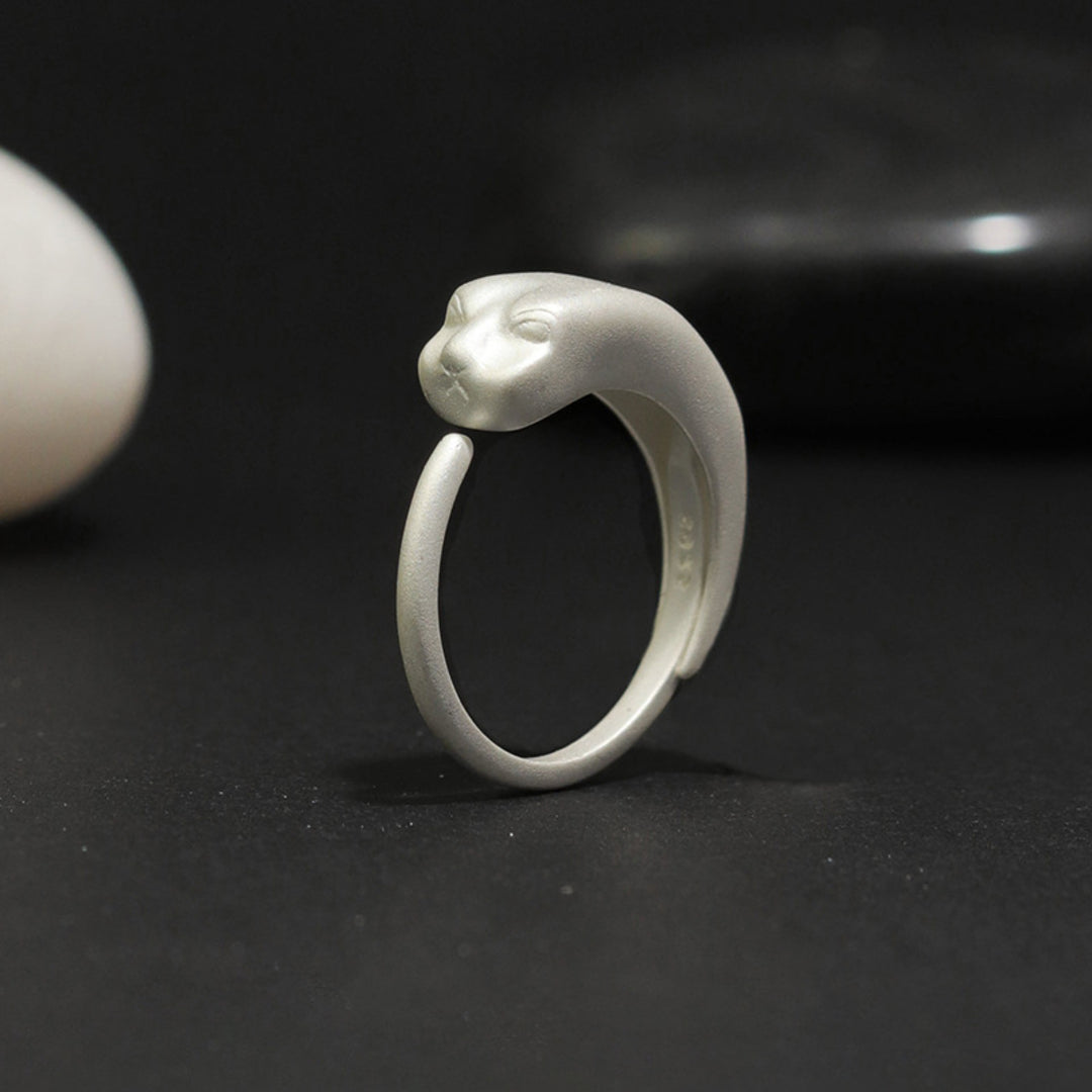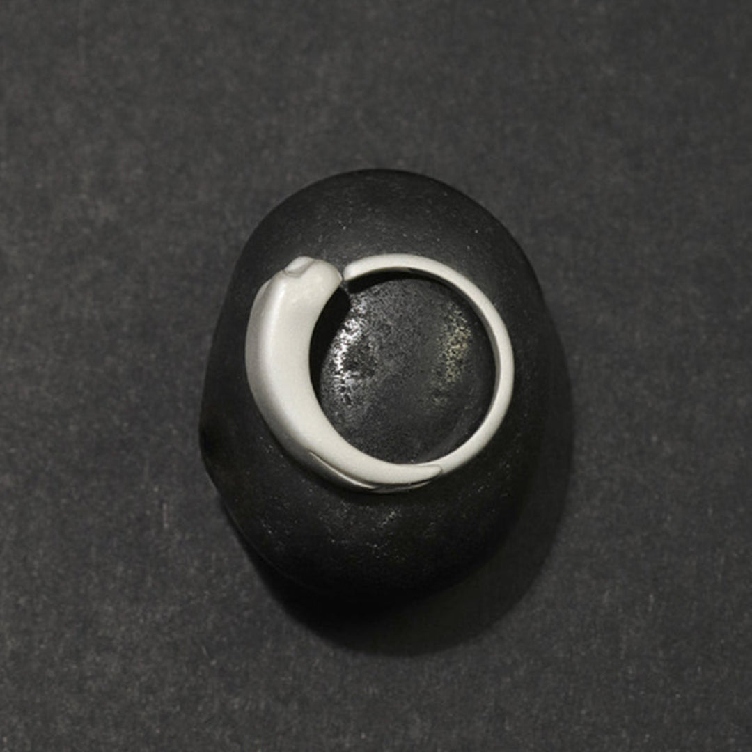 Tiger Fish Ring Adjustable 925 Sterling Silver Burnt White Original Fine Niche Jewelry Design