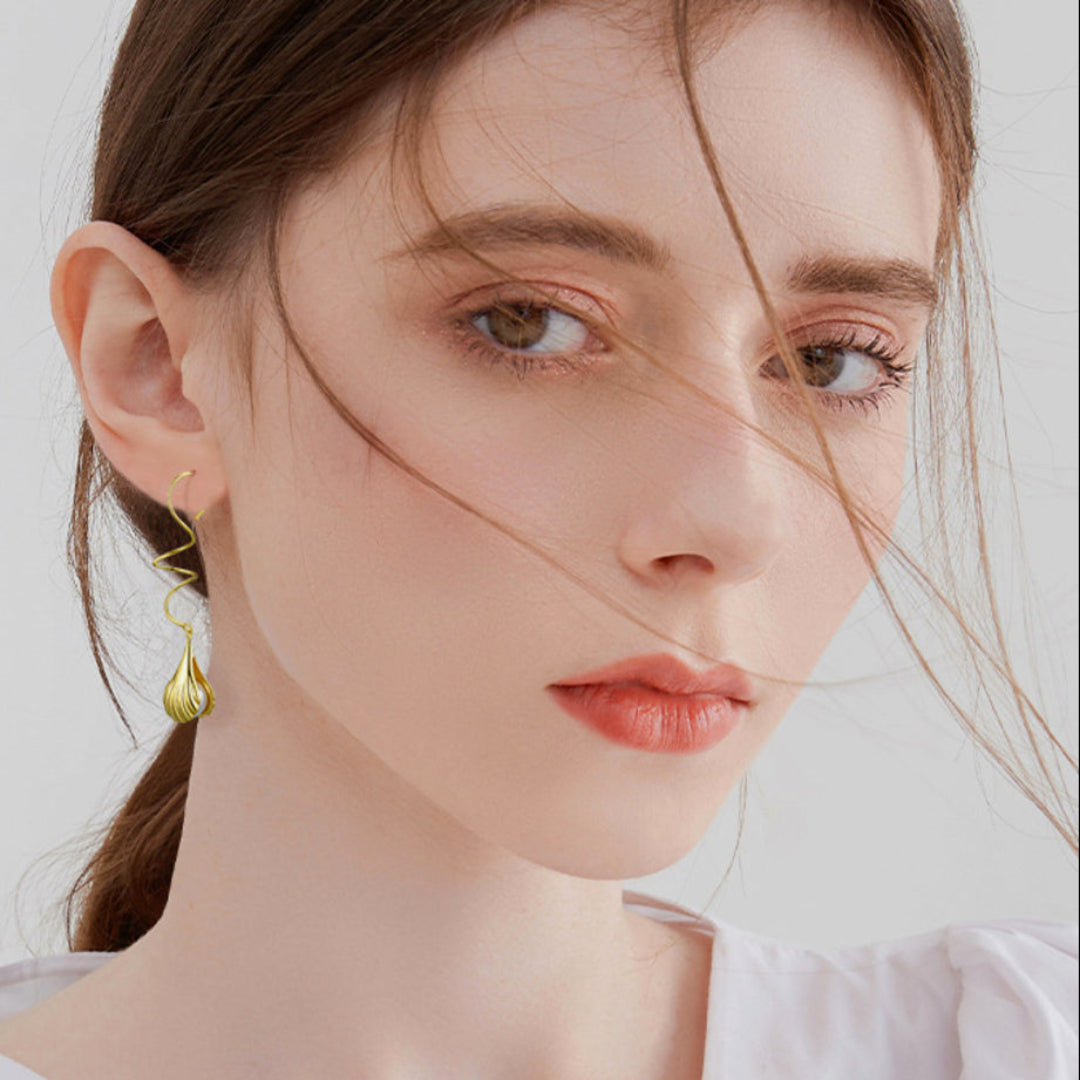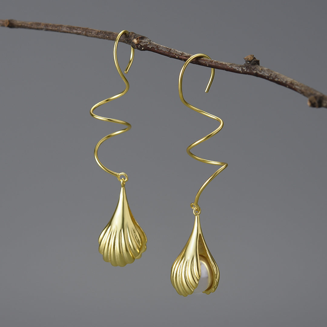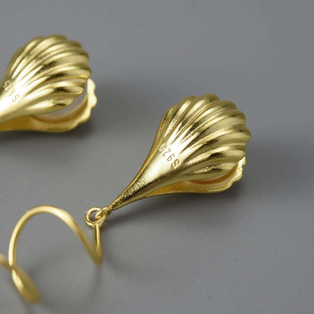Wire Earrings With Mother-Of-Pearl Bead In A Shell Setting 925 Sterling Silver 18K Gold Plated Fine Jewelry Design